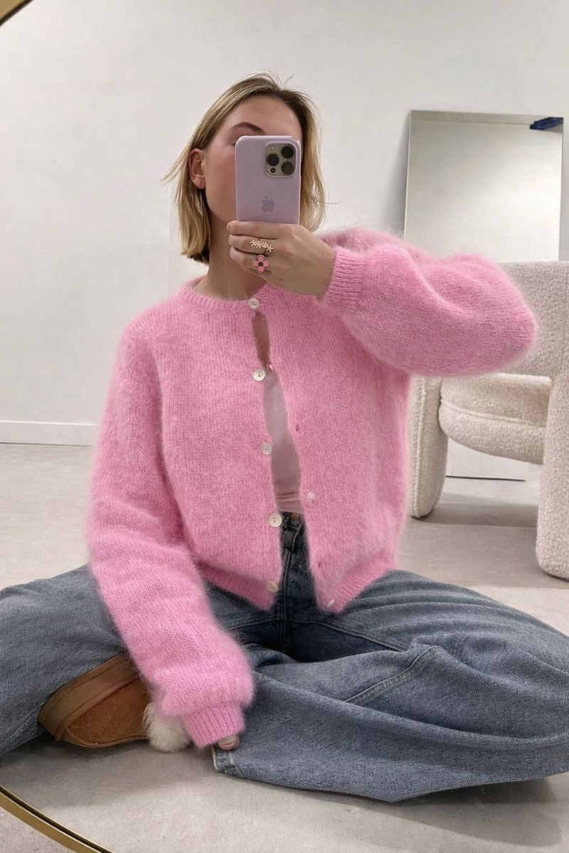 - Gilet court en mohair à manches longues